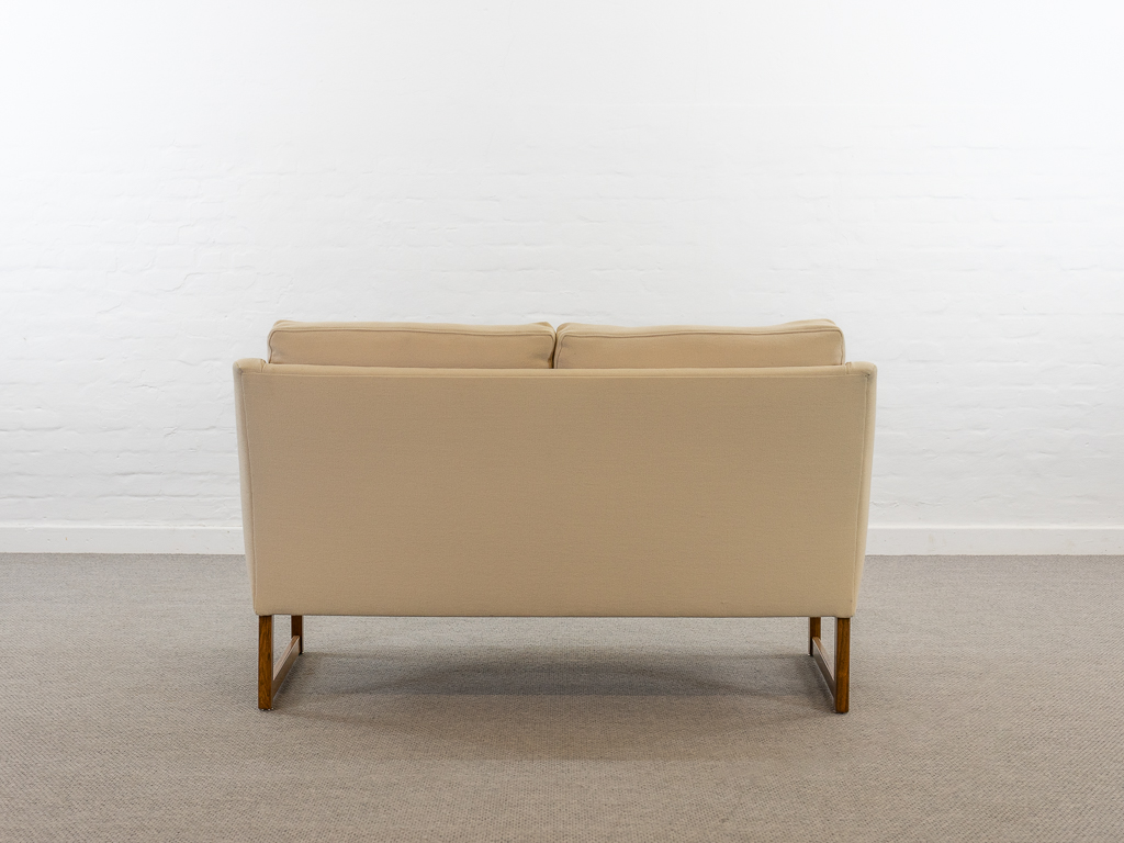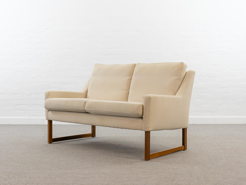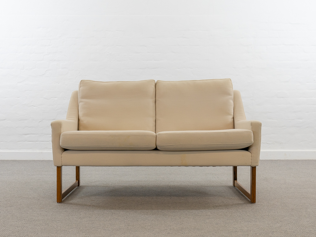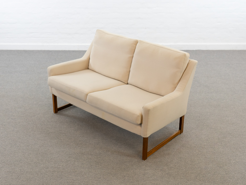 Klassisch anmutendes 2-Sitzer Sofa, entworfen in den 60er Jahren von Rudolf Bernd Glatzel für Kill International. Bezogen mit originalem creme farbenem Stoff. Guter gebrauchter Zustand, kleinere Flecken und Gebrauchsspuren vorhanden. Maße: B. 132cm, T. 80cm, H. 79cm. Nichtraucher Objekt.