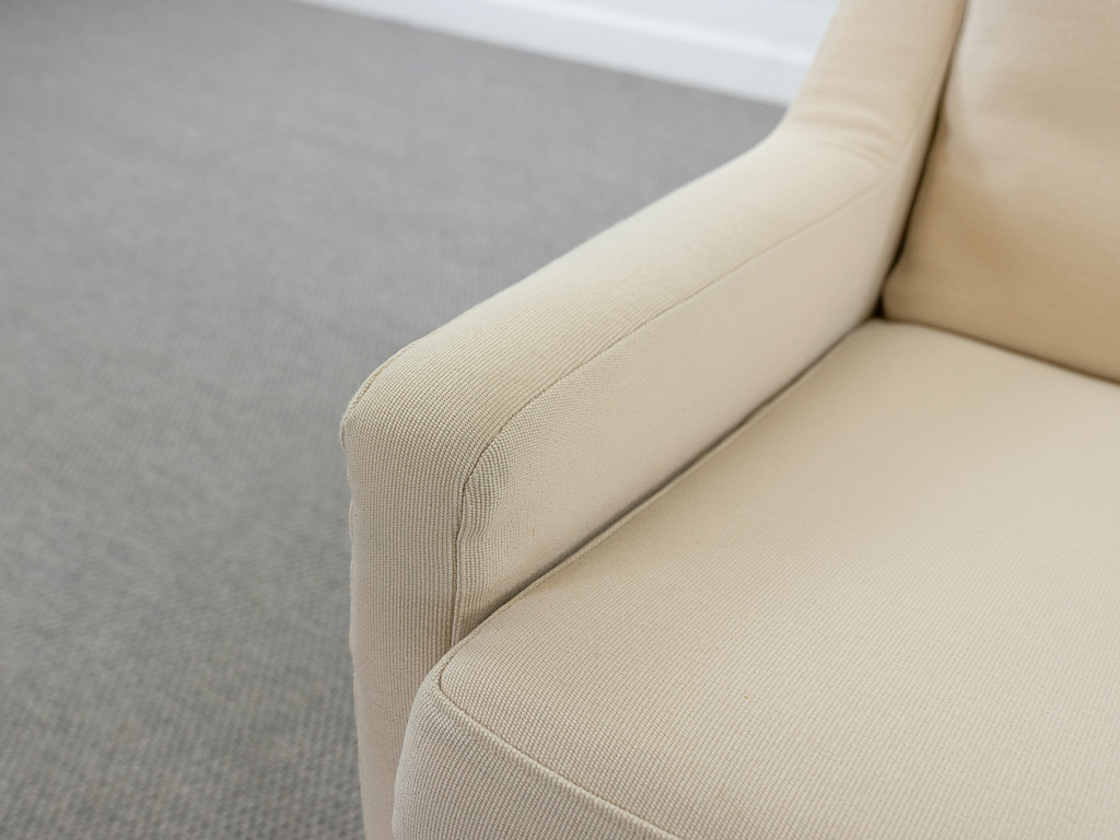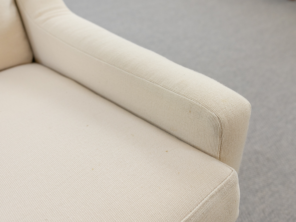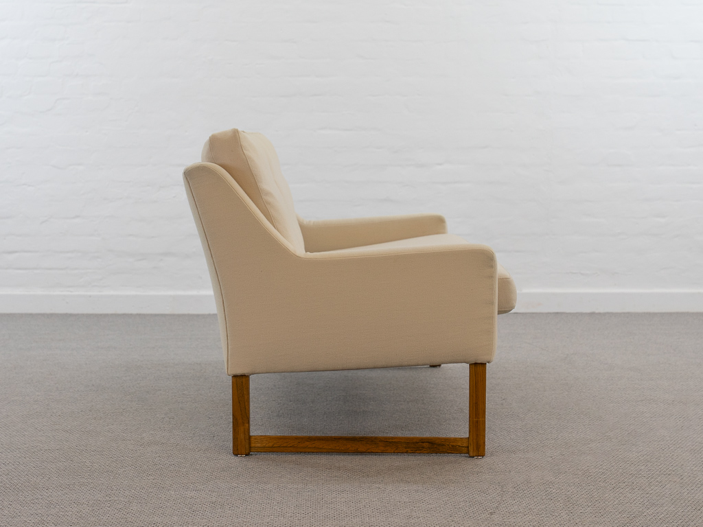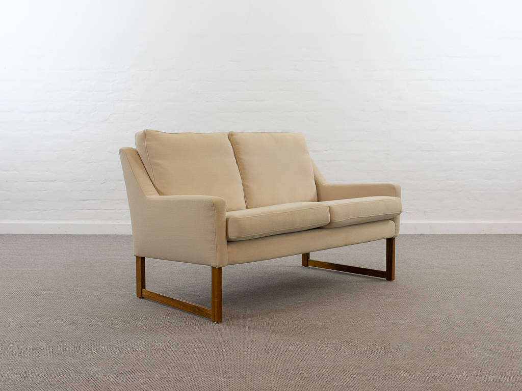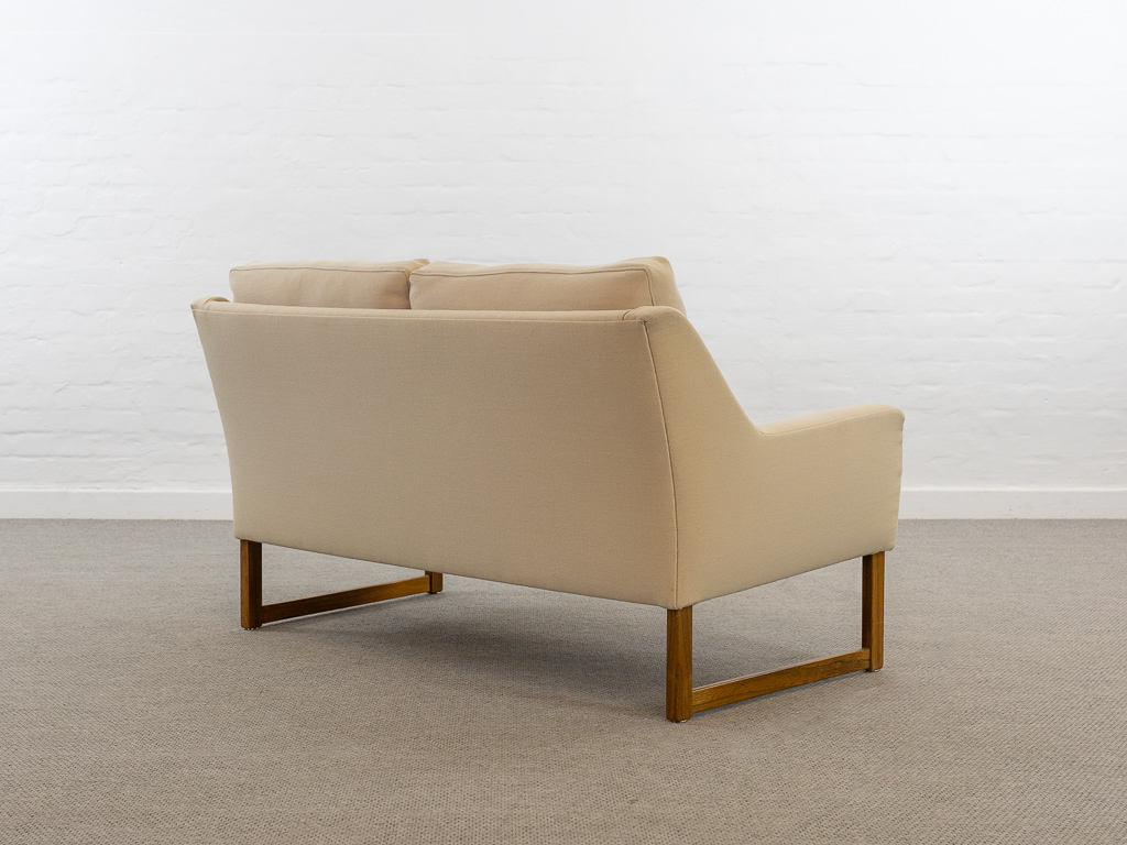 Klassisch anmutendes 2-Sitzer Sofa, entworfen in den 60er Jahren von Rudolf Bernd Glatzel für Kill International. Bezogen mit originalem creme farbenem Stoff. Guter gebrauchter Zustand, kleinere Flecken und Gebrauchsspuren vorhanden. Maße: B. 132cm, T. 80cm, H. 79cm. Nichtraucher Objekt.