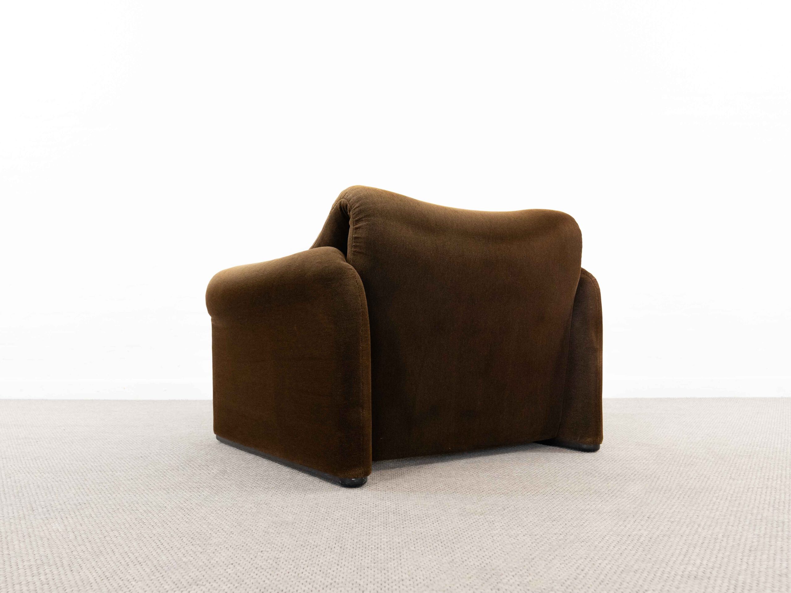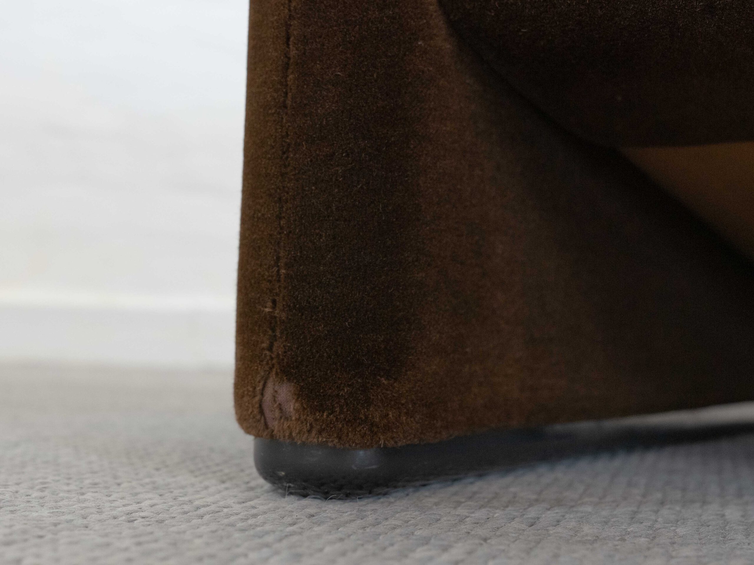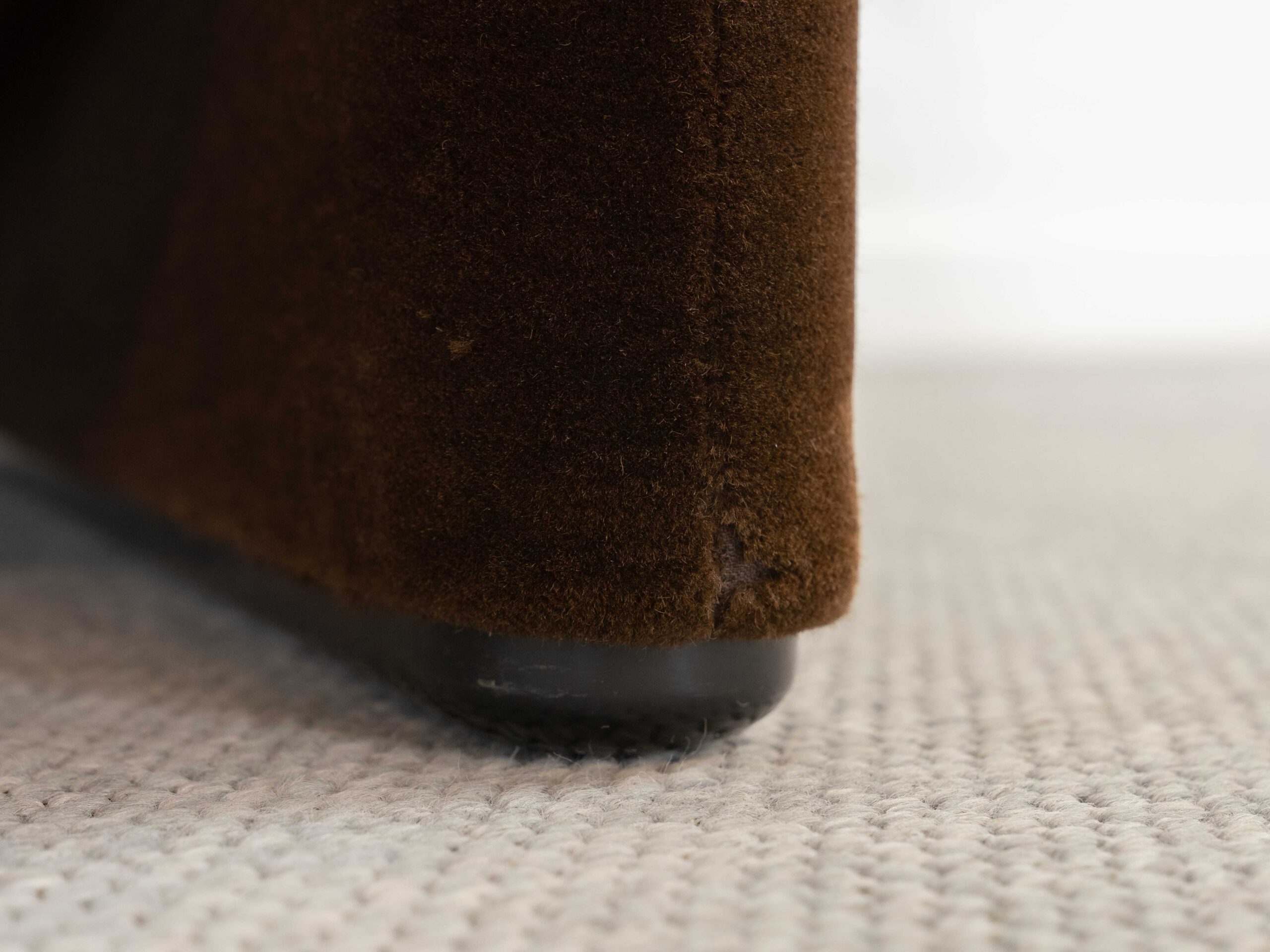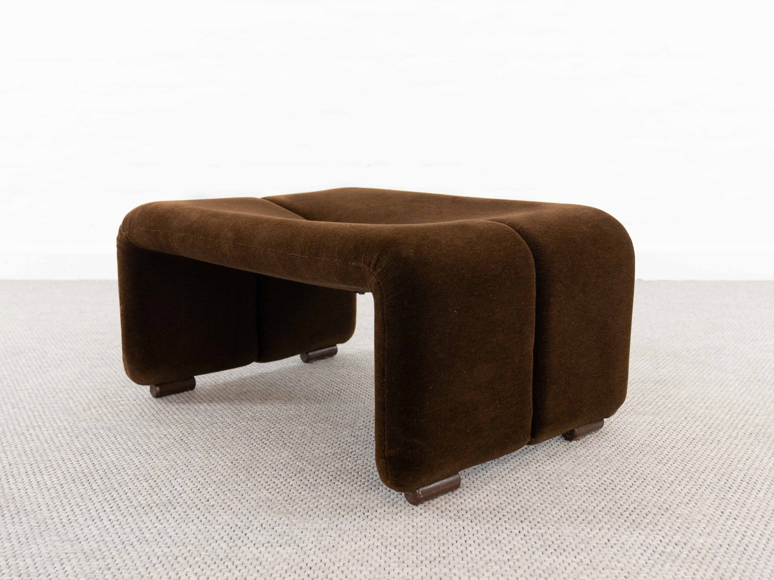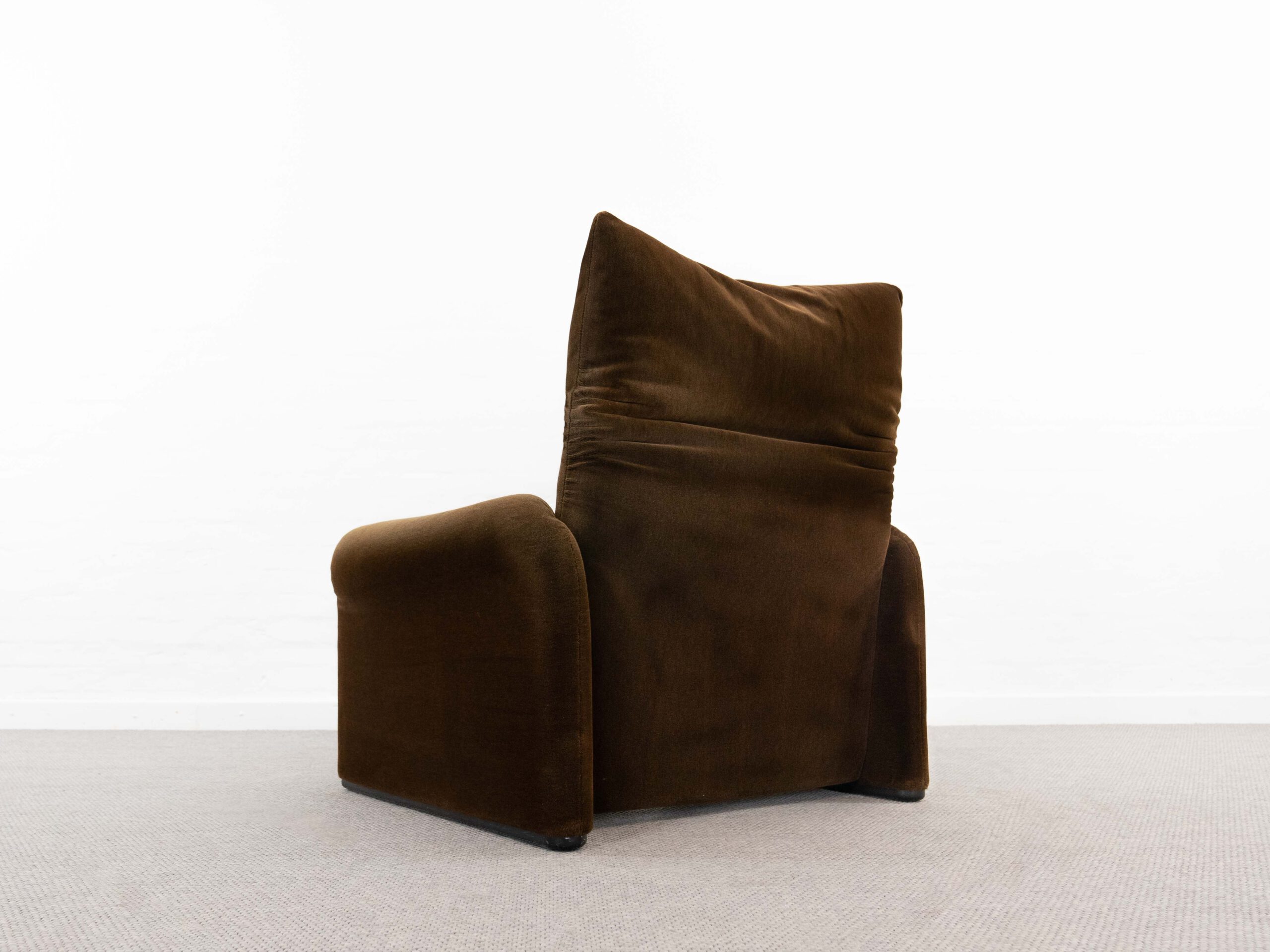 Sitzgruppe bestehend aus Cassina Maralunga 2-sitzer Sofa, Maralunga Sessel sowie einem B&B Italia Fusshocker. Die Sitzgruppe wurde in den frühen 80ern mit einem dunkelbraunem teddy-/samtähnlichem Stoff bezogen, daher ist kein Herstelleretikett mehr vorhanden. Nichtraucherobjekt. Die Rückenlehnenmechanik funktioniert, gutes Sitzgefühl, nicht durchgesessen. Der Stoff weist etwas Abrieb an den Fusskanten und teilw. an den Kissenecken des Sofas und des Sessels auf. Bitte sehen sie sich die beigefügten Fotos an. Die rechte Seite des Sofas weist eine Verfärbung auf, da das Sofa seit den 80ern teilw. verdeckt gestanden hat und im vorderen Teil etwas mehr ausgeblichen ist. Der Hocker ist von B&B Italia, Entwurf von Afra&Tobia Scarpa, Modell Coronado. Maße Sofa: B.165cm, H.70/100, T.85 Maße Sessel: B.100, H.70/100, T.85