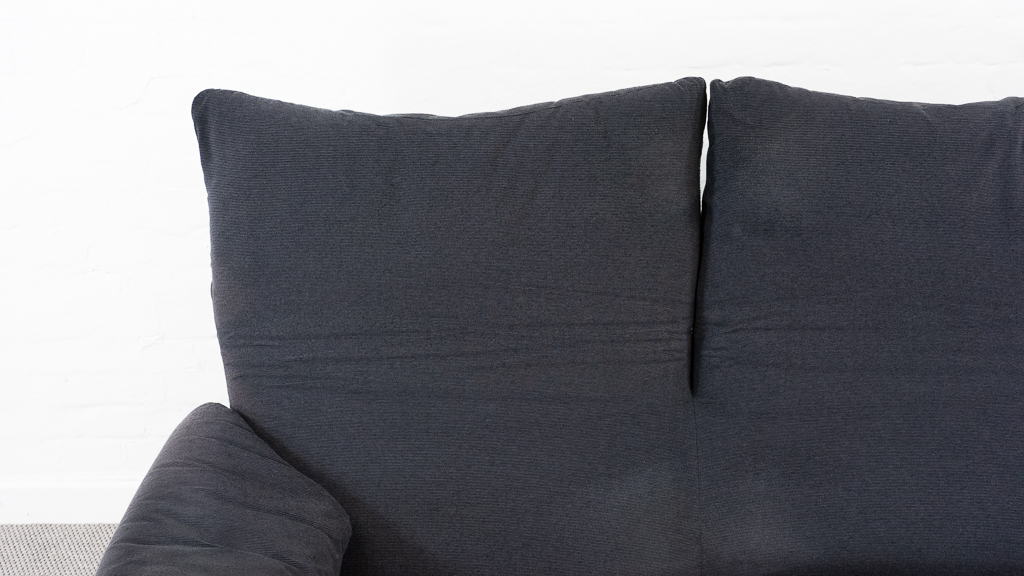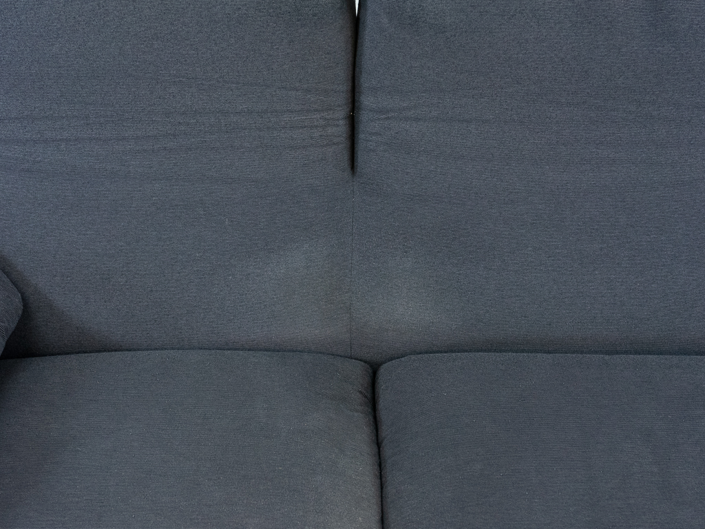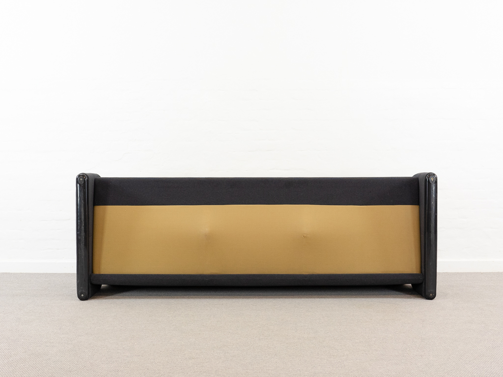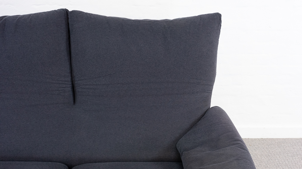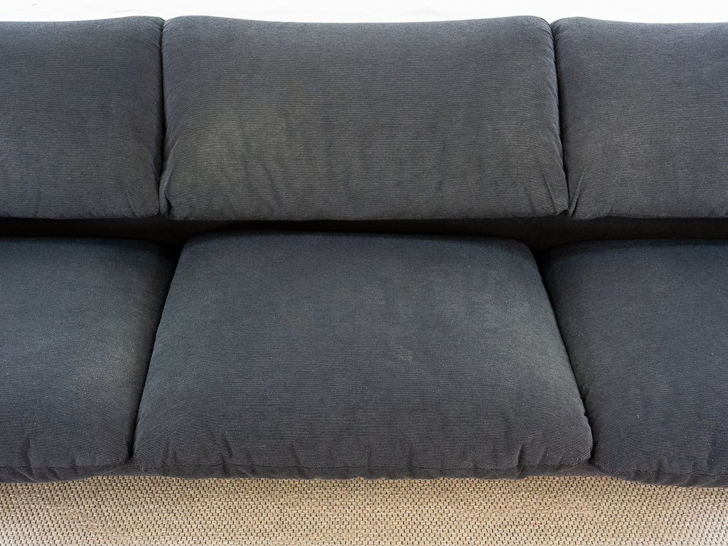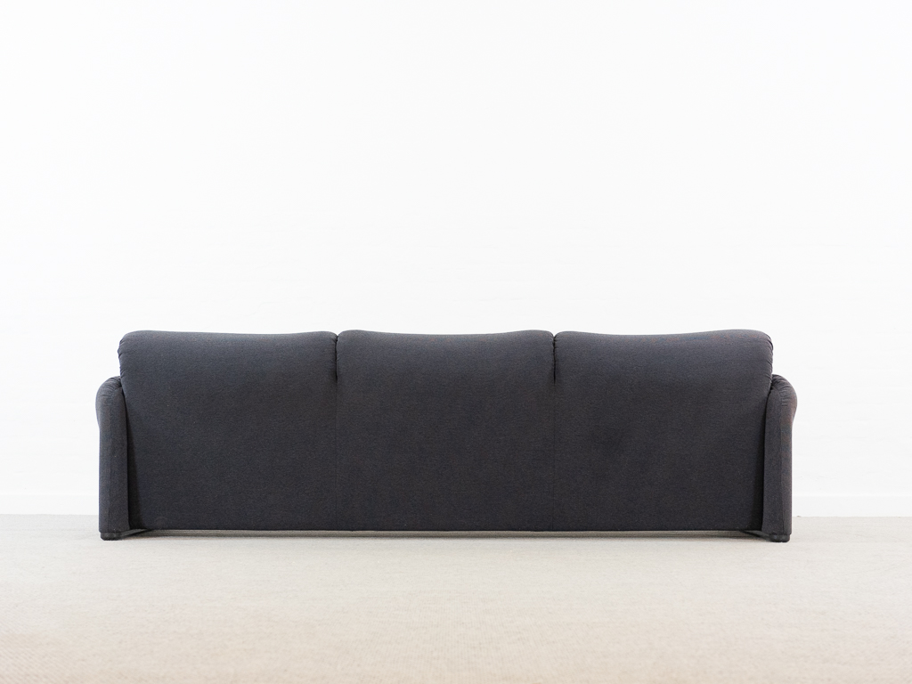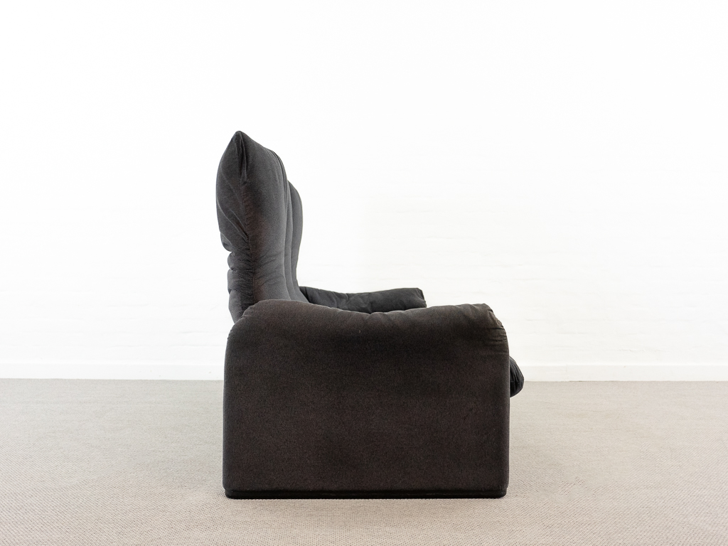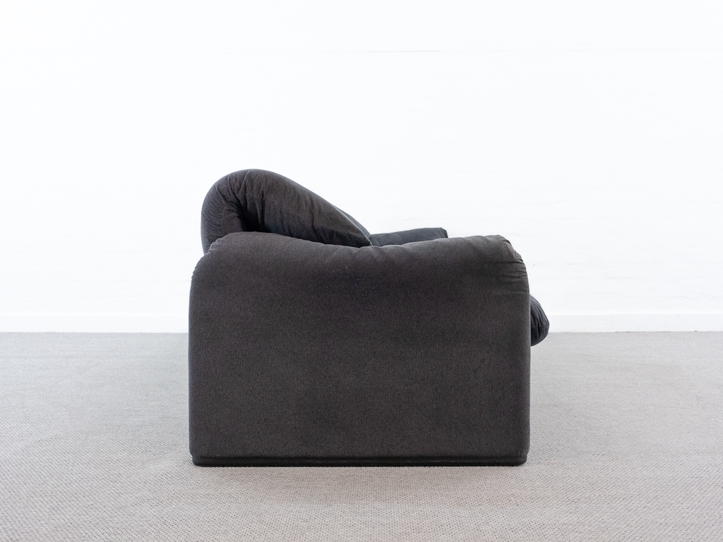Maralunga 3-Sitzer Sofa von Cassina, entworfen 1973 von Vico Magistretti. Dieses Sofa verfügt über faltbare Rückenlehnen um verschiedene Sitzpositionen zu ermöglichen. Der Vorbesitzer hat das Sofa vor Jahren in grau-blauem Stoff polstern lassen, deshalb sind keine Herstellermarkungen mehr vorhanden. Höhe der niedrigen Position Rückenlehne 70cm, Höhe der hohen Position Rückenlehne: 100cm. Nichtraucher-Objekt. Deutliche Abnutzungs -und Gebrauchsspuren, insbesondere an den Armlehnen vorhanden. Teilweise ausgeblichen. Keine Flecken. Der Sitzkomfort ist gut. Das Sofa kann so benutzt werden, wir würden jedoch eine Neupolsterung empfehlen. Bitte sehen Sie sich die beigefügten Fotos an.