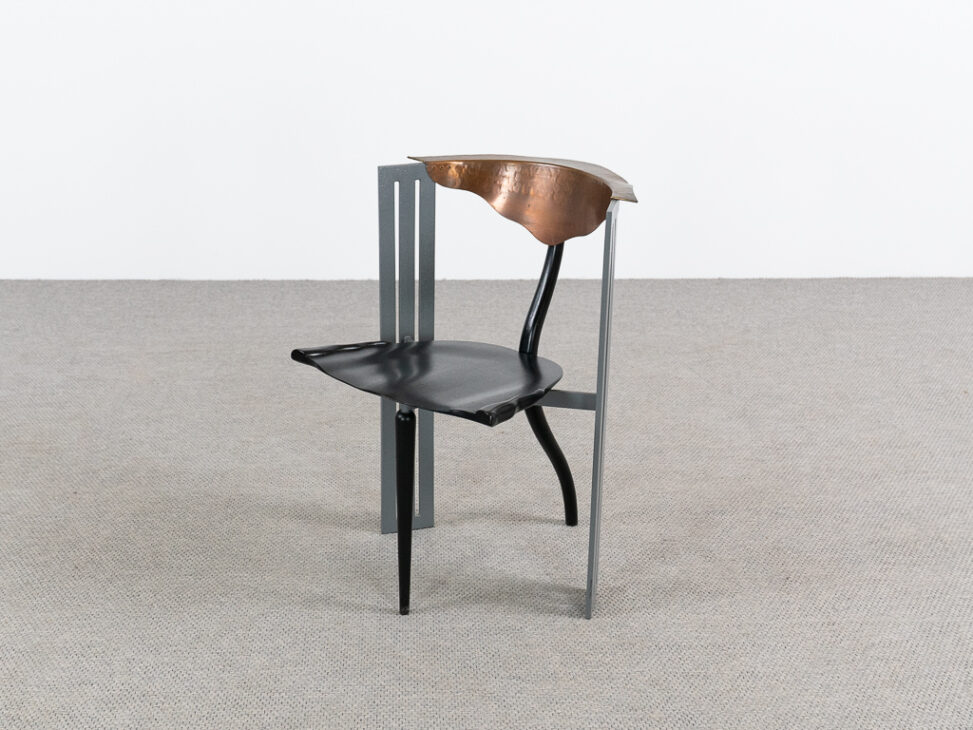 This extraordinary armchair, the “Ota Otanek” model, designed in the 1980s by Borek Šípek for Vitra, is a striking example of postmodern design. With its sculptural form and sophisticated combination of materials, it embodies the playful yet elegant style of that era.