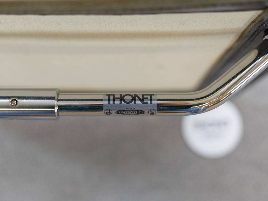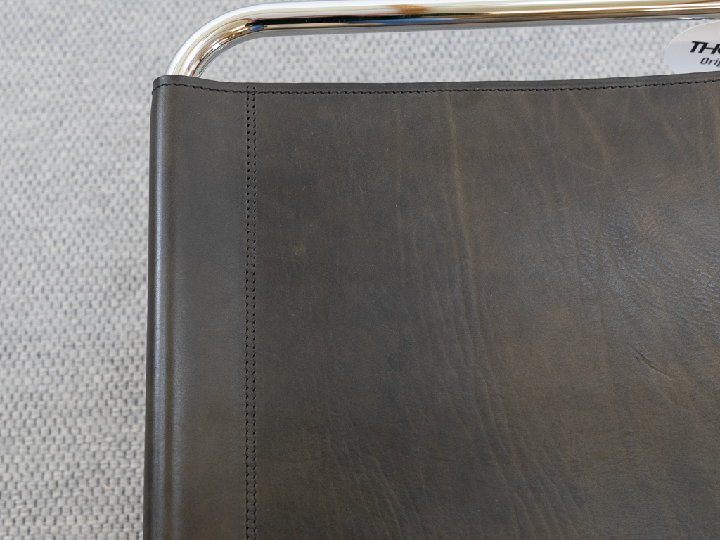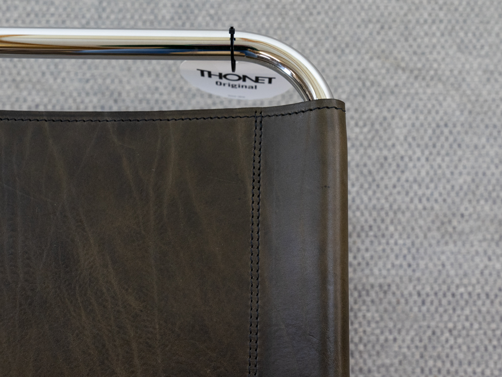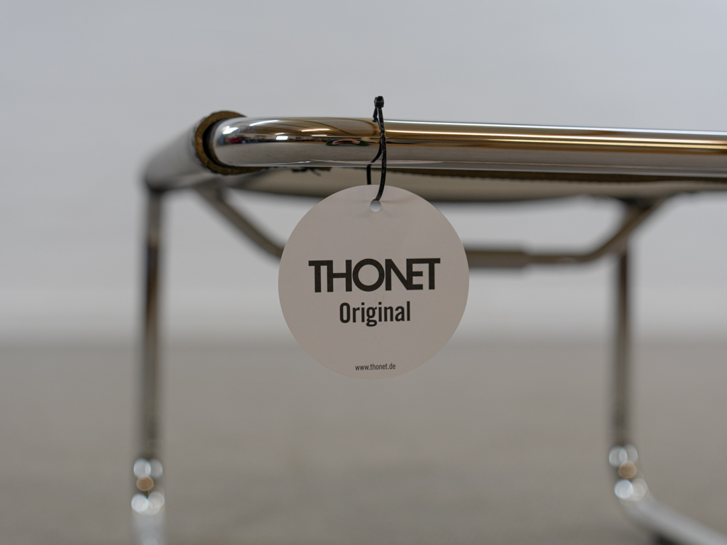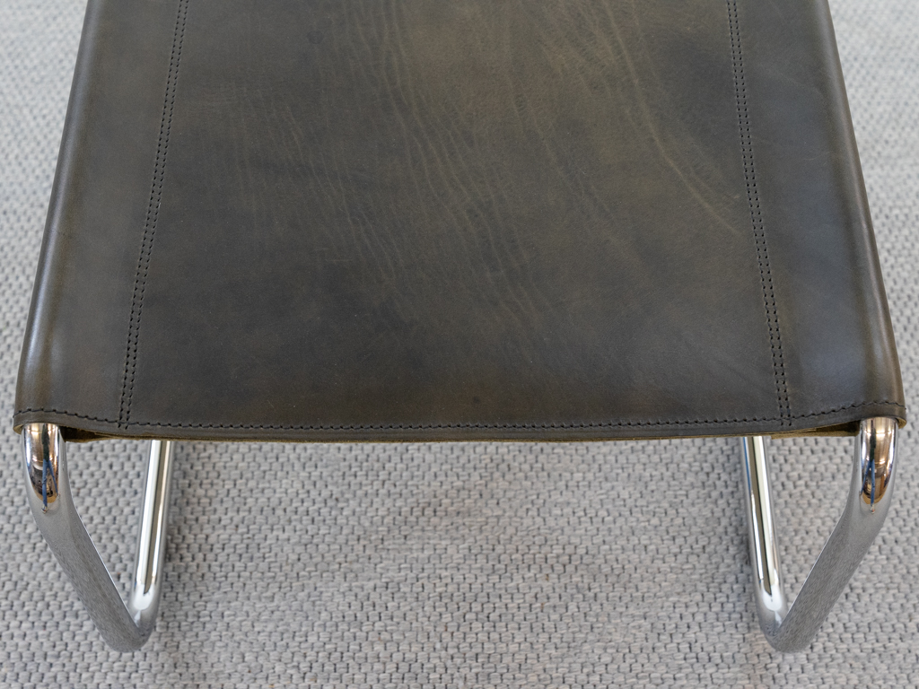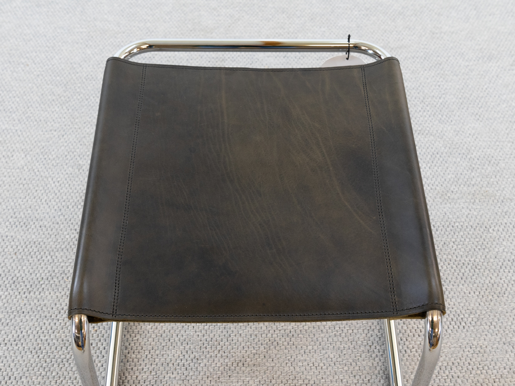 Cantilevered footstool S 35 LH, designed in 1929 by Marcel Breuer for Thonet. Matches the Thonet S 35 L armchair. Made from chrome-plated tubular steel. Labelled with Thonet sticker on the underside. The cover is made of high-quality natural black core leather. The irregular natural surface of the leather is a sign of quality. Very good condition, was previously only shown as an exhibition piece. VAT is shown on this item.