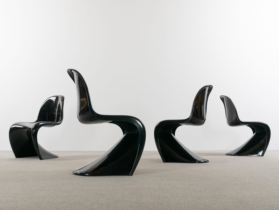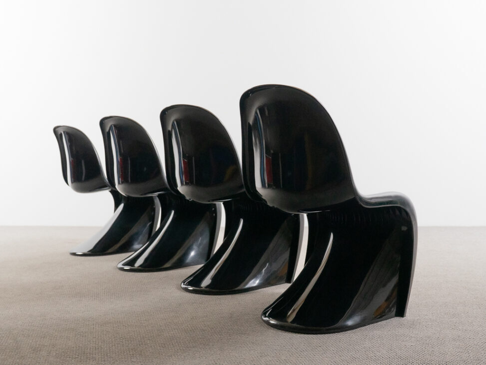 This set of four original Panton chairs combines iconic design with authentic vintage quality. Designed by Verner Panton and produced by Herman Miller / Fehlbaum, these chairs are from the highly sought-after second production run.