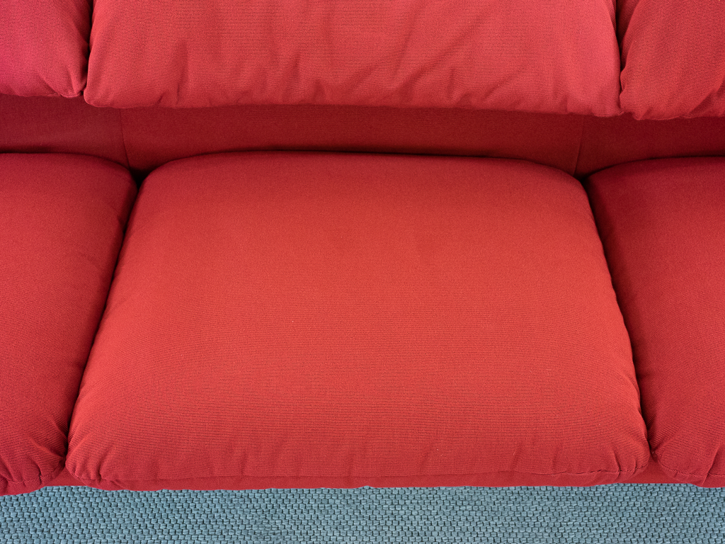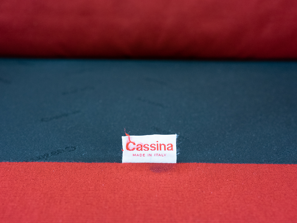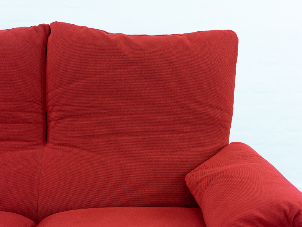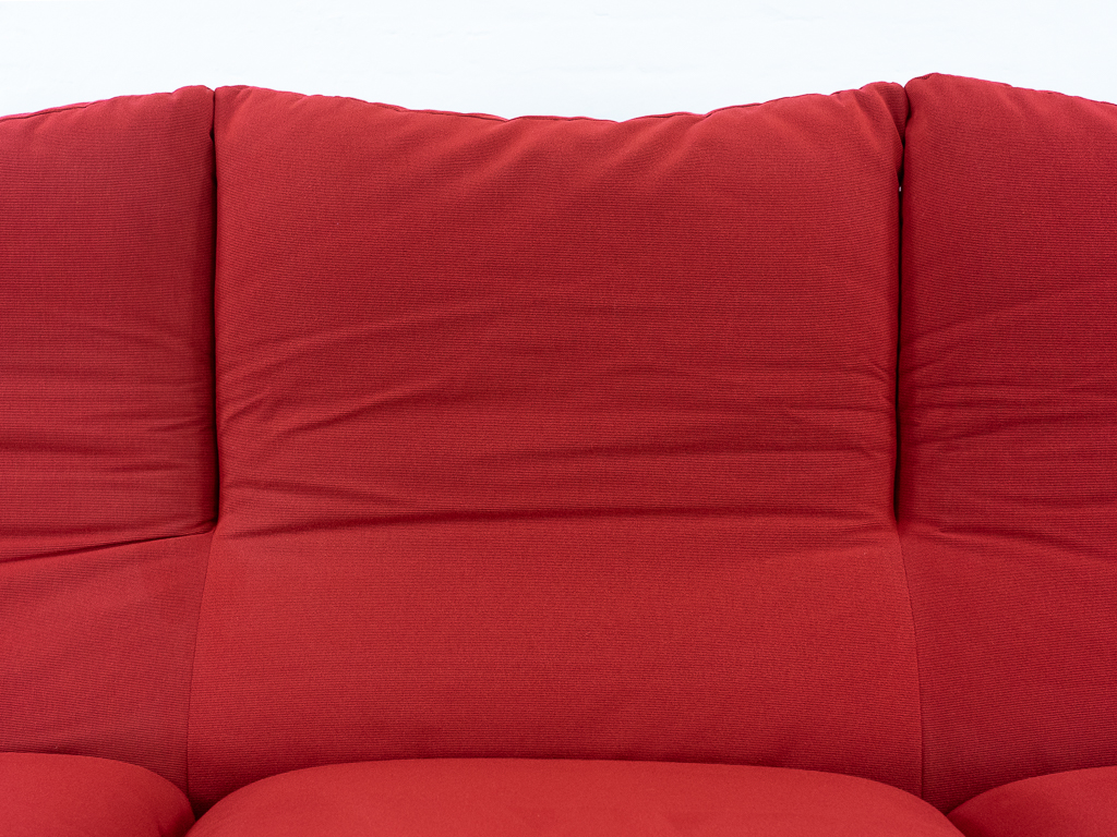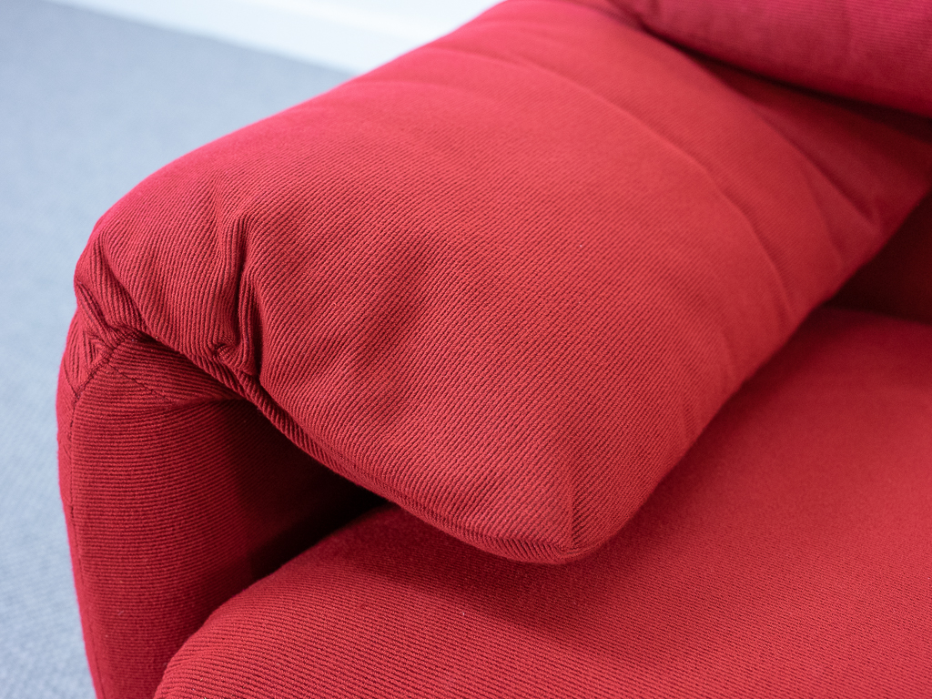 Maralunga 3-Sitzer Sofa von Cassina, entworfen 1973 von Vico Magistretti. Dieses Sofa verfügt über faltbare Rückenlehnen um verschiedene Sitzpositionen zu ermöglichen. Gepolstert im originalem rotem Cassina Soff. Das Sofa ist mit Herstelleretikett gelabelt sowie Cassina Schriftzug im Unterstoff. Höhe der niedrigen Position Rückenlehne 70cm, Höhe der hohen Position Rückenlehne: 100cm. Nichtraucher-Objekt. Guter gebrauchter Zustand.