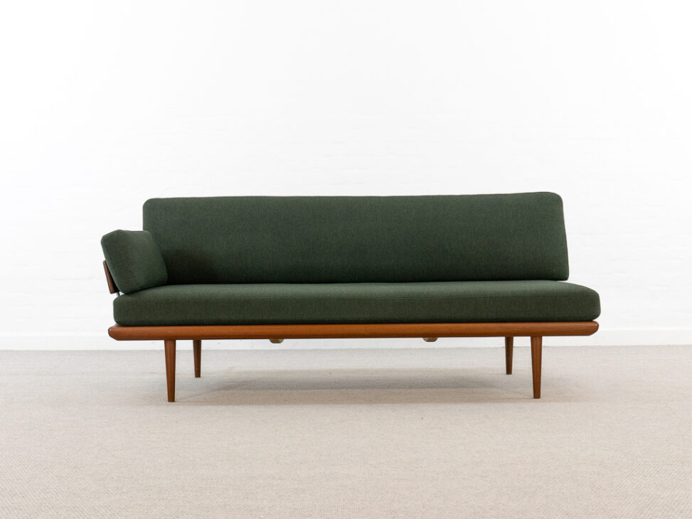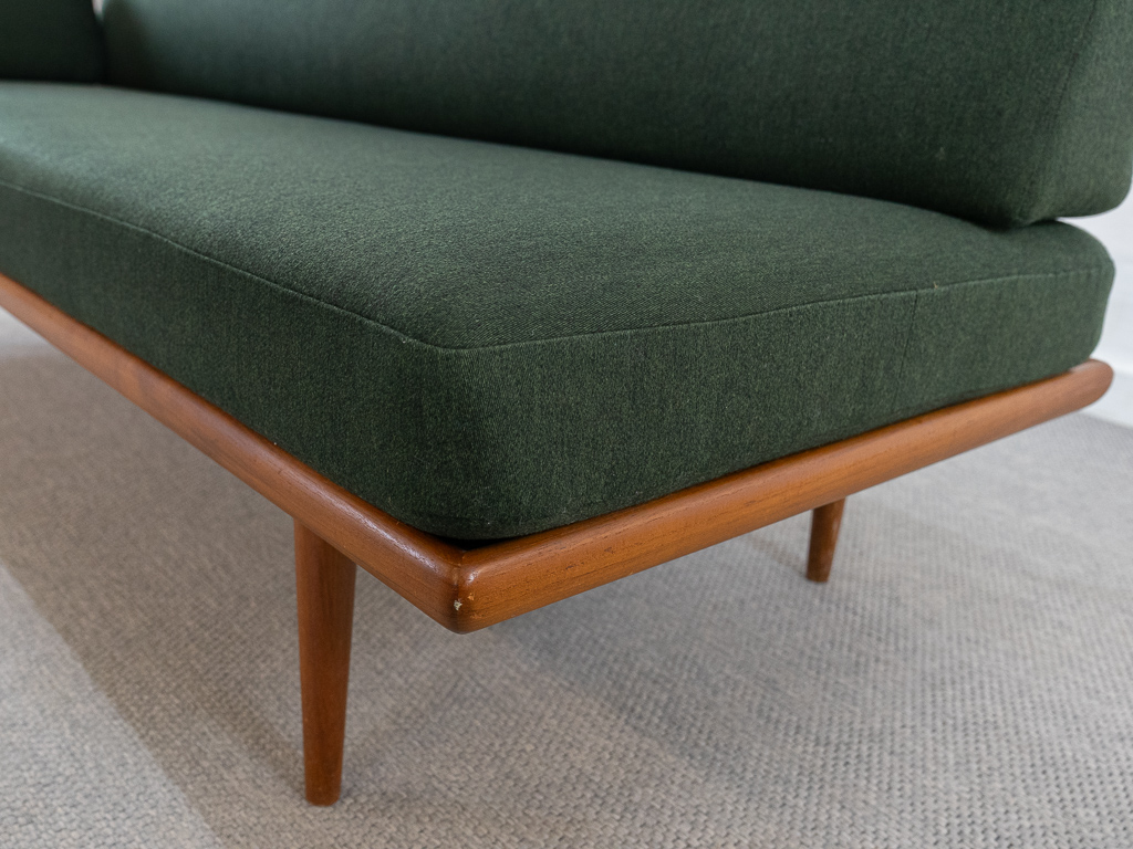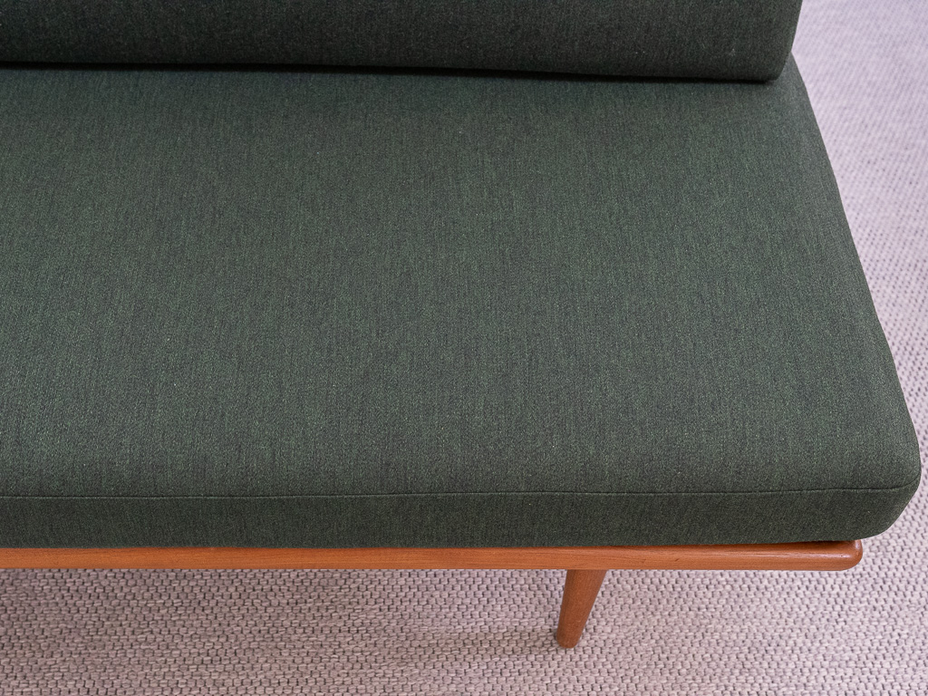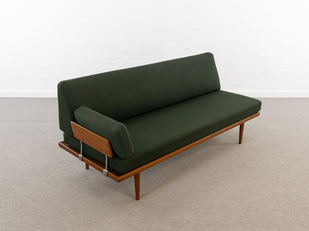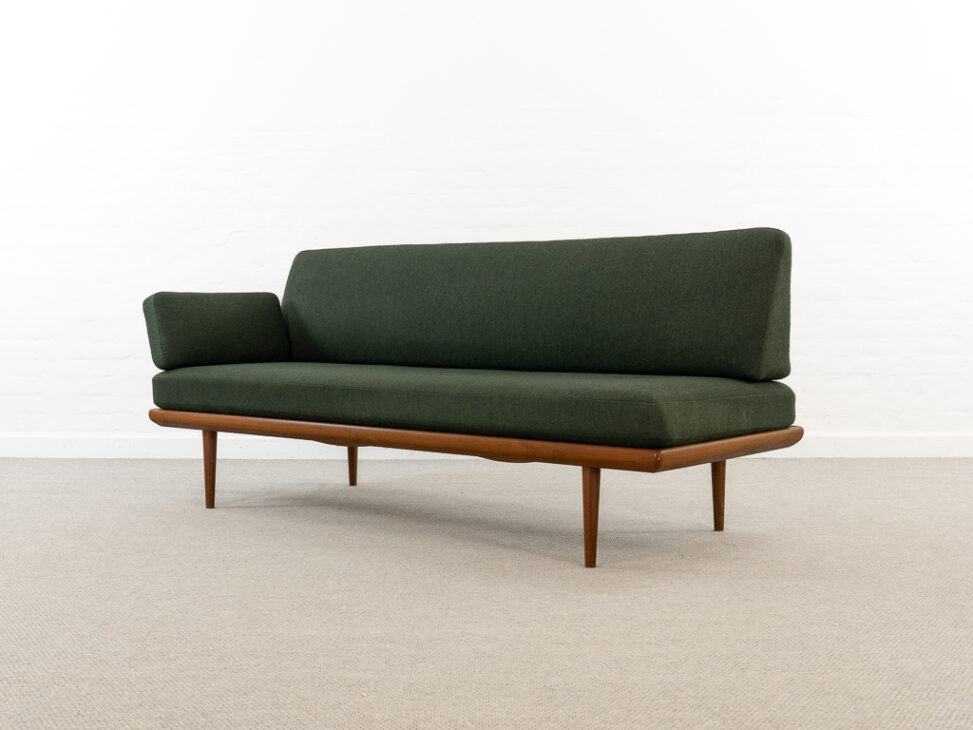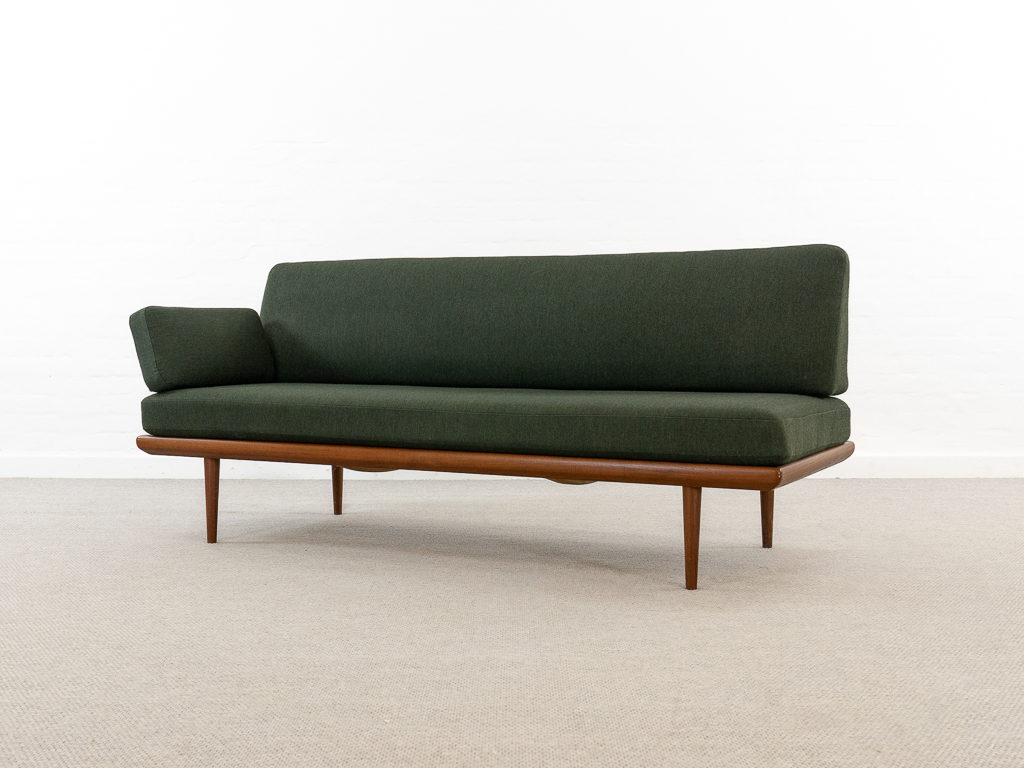 Ikonisches Minerva Sofa des renommierten dänischen Designerduos Peter Hvidt & Orla Mølgaard-Nielsen 1950er Jahre. Hersteller ist France & Daverkosen (später France & Son). Dieses Modell ist ein hervorragendes Beispiel für skandinavisches Mid-Century-Modern-Design: klare Linien, elegante Proportionen und eine perfekte Verbindung aus Funktionalität und Ästhetik.
