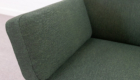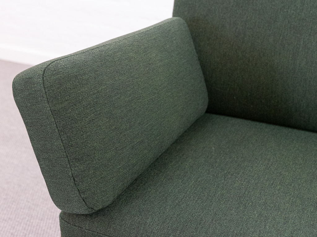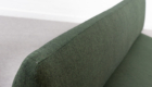 Die Polsterung ist in einem tiefen, dunklen Grünton gehalten und unterstreicht den zeitlosen, hochwertigen Charakter des Entwurfs.