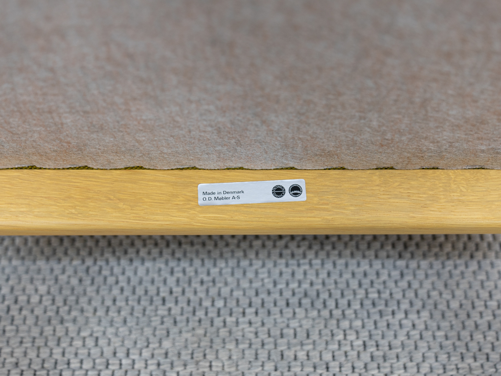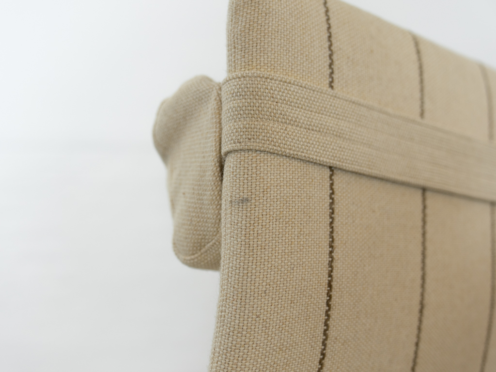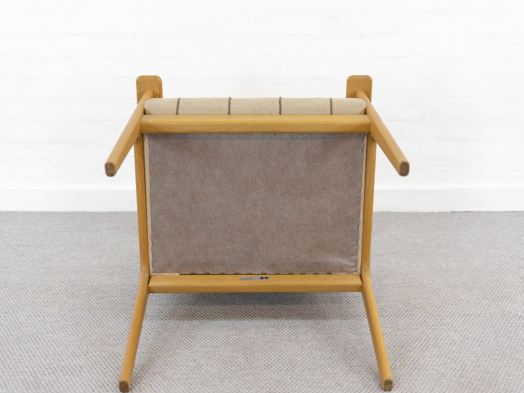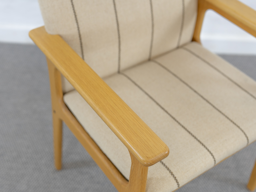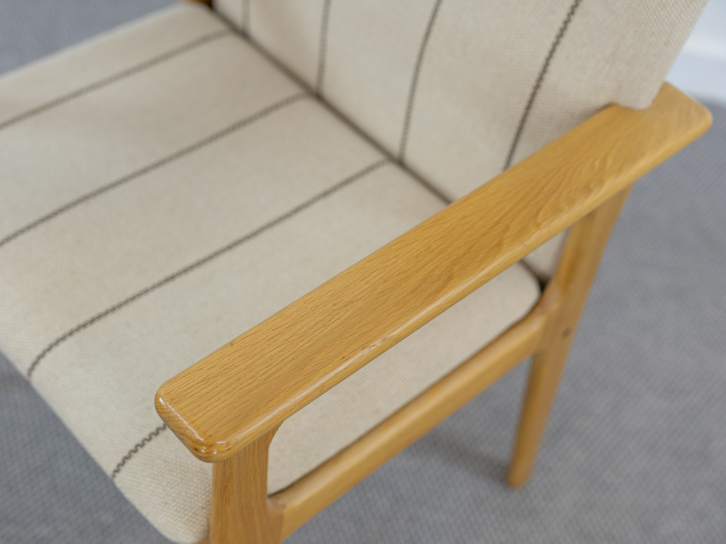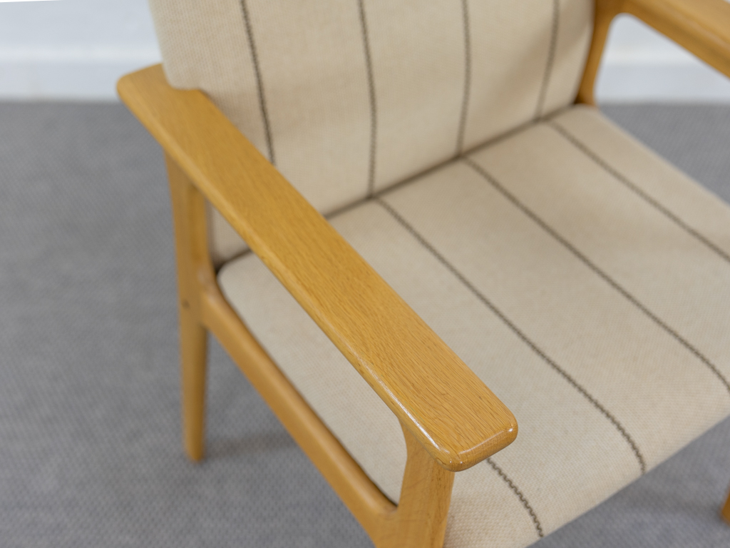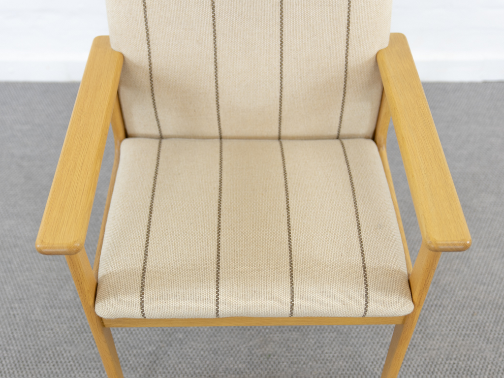 Vintage 2er Set Hochlehner Stühle von Domus Danica, Dänemark 70er. Der Entwurf wird Erik Buck zugeschrieben. Ausgeführt in Eichenholz, original bezogen mit einem gestreiftem Wollstoff. Höhenverstellbare Kopf-/ Nackenstütze. Guter gebrauchter Zustand. Unterseitig mit Herstelleretikett versehen.