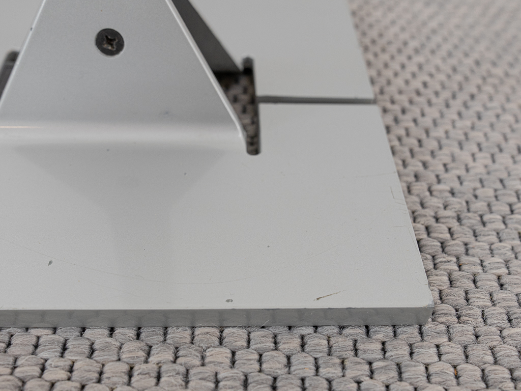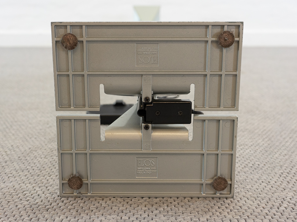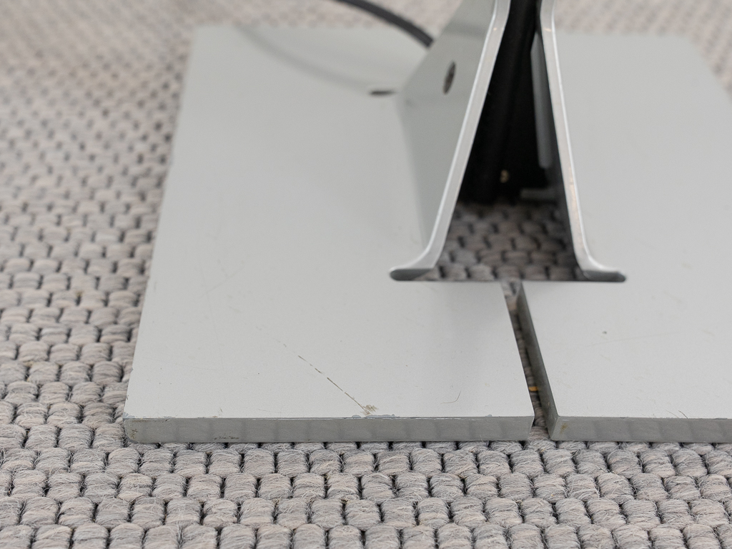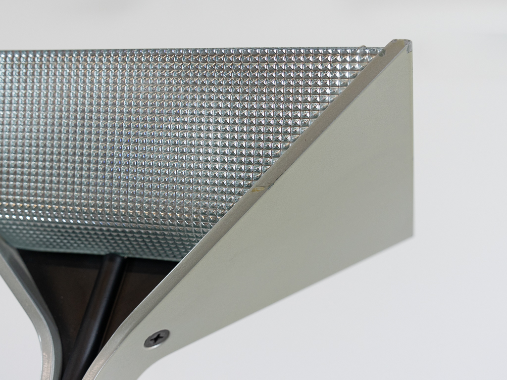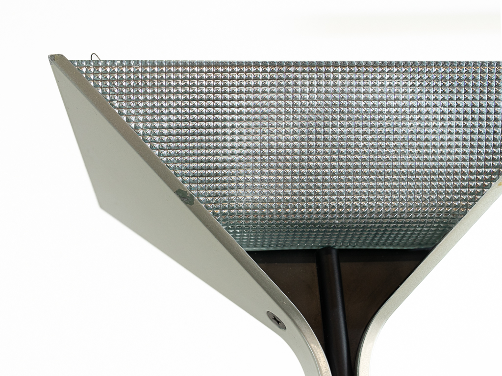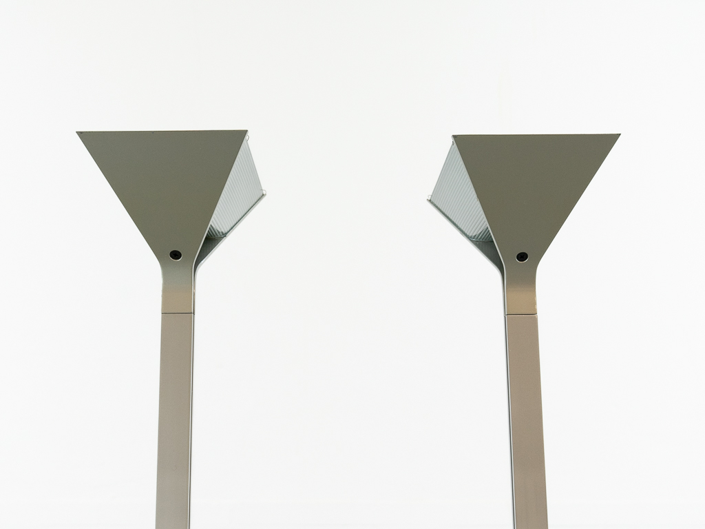Set (2) Papillona Stehleuchten-Deckenfluter Modell 750 in silber. Entworfen 1975. Aluminium-/Metallkonstuktion mit eingesetzten prismatischen Gläsern. Beide Lampen am Fusschalter dimmbar. Maße: Fuß 26x26cm, Höhe 1,92m. Guter vintage Zustand, Alters-und Gebrauchsspuren vorhanden. Flos Logo im Fuss und im Schirm. Beide Lampen wurden auf LED umgerüstet und erhielten neue Ausschalter/Dimmer.