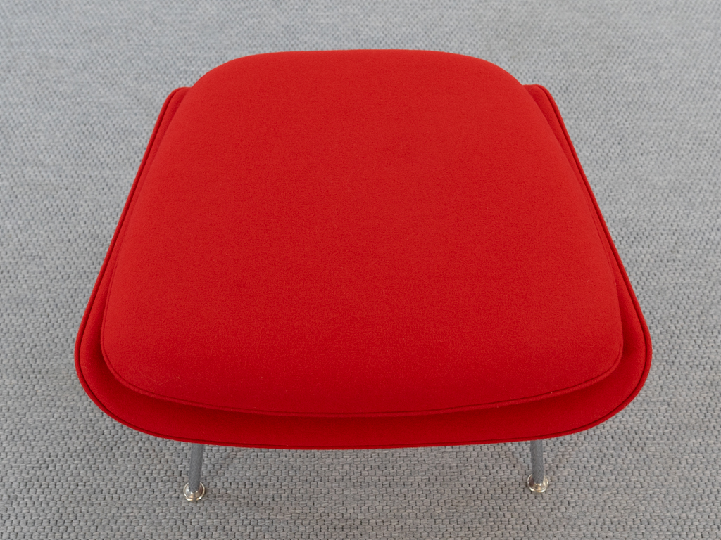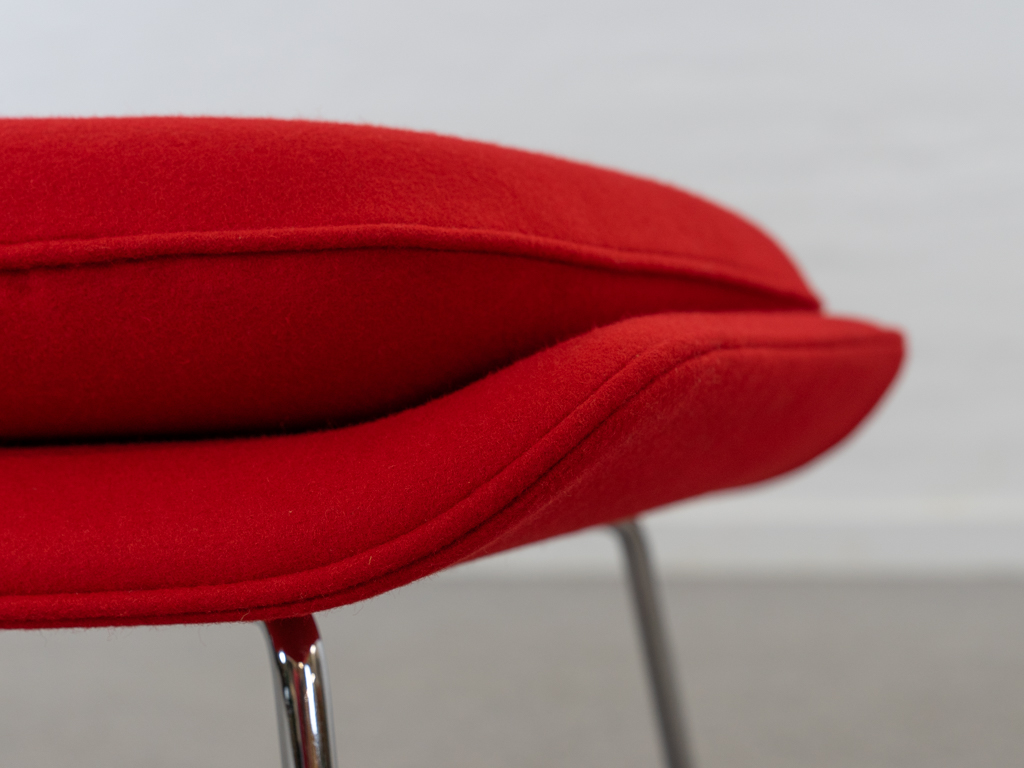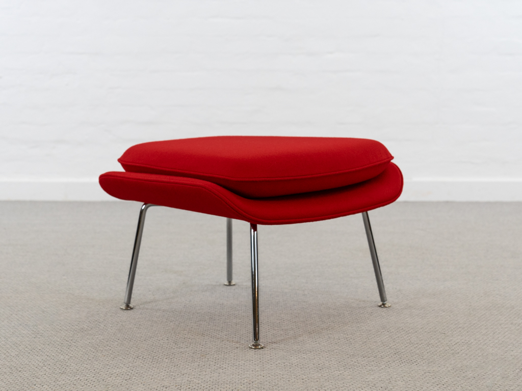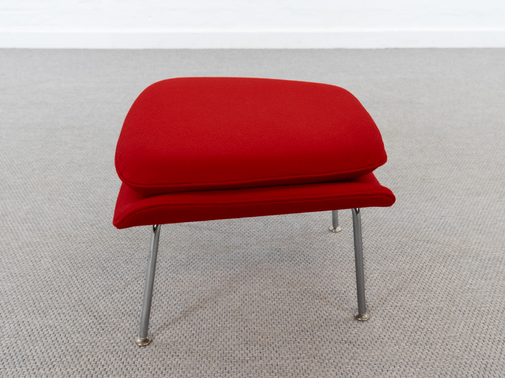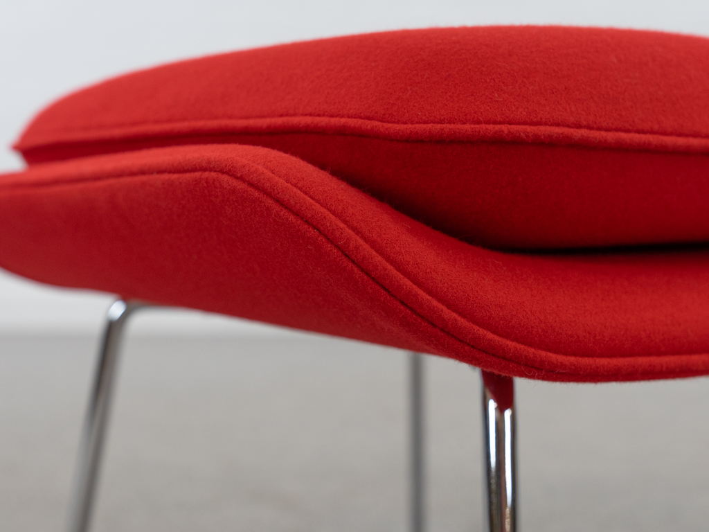 Womb Relax Ottoman / Hocker entworfen 1946 von Eero Saarinen für Knoll International. Die perfekte Ergänzung zum Designklassiker Womb Chair. Auch als Solitär macht der Design-Hocker eine stilvolle Figur und bietet immer eine komfortable Sitzgelegenheit mit seiner sanften, geschwungenen, skandinavischen Formensprache. Am Bein mit Knoll Gravur bezeichnet. Sehr guter Zustand. Der Hocker wurde nie gebraucht.