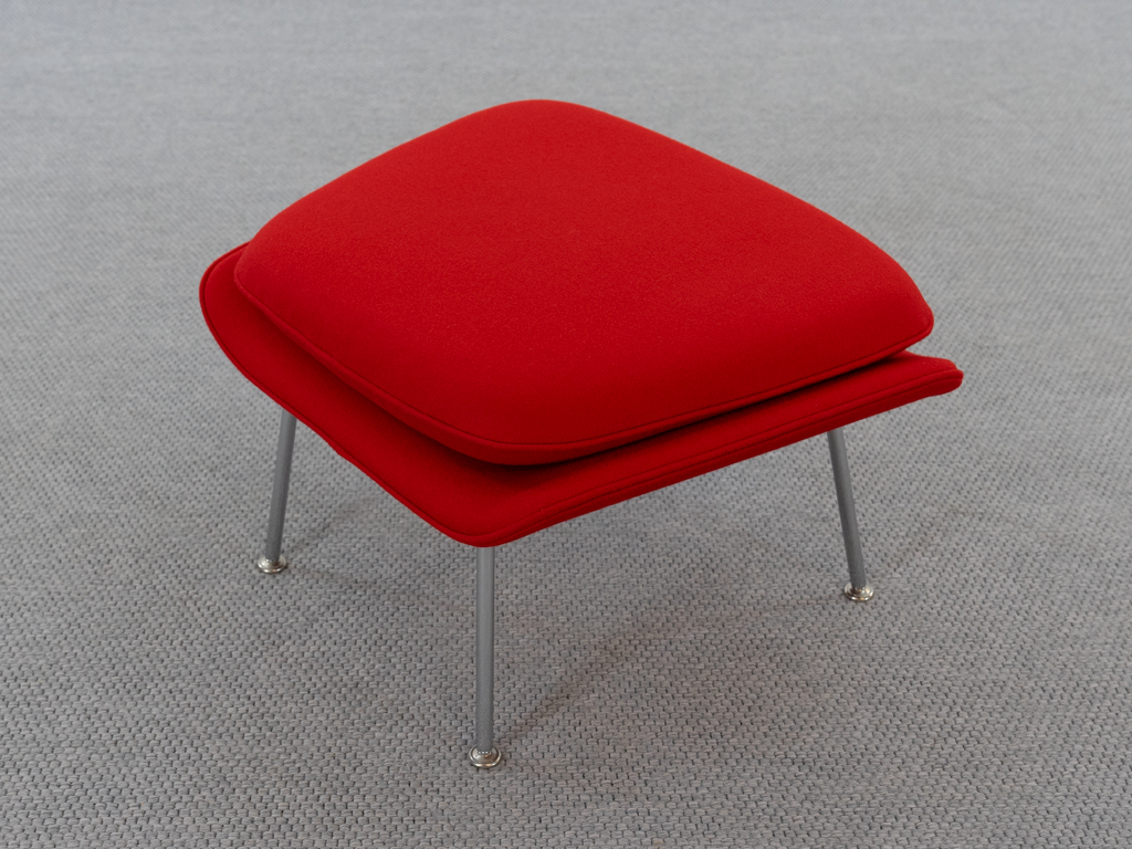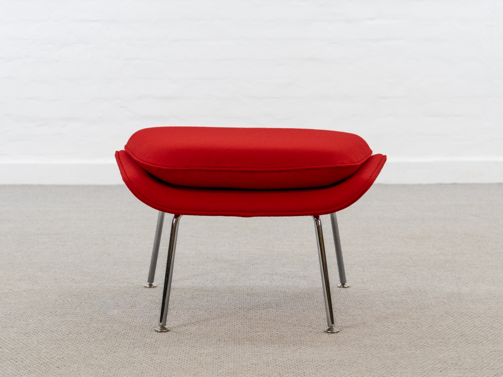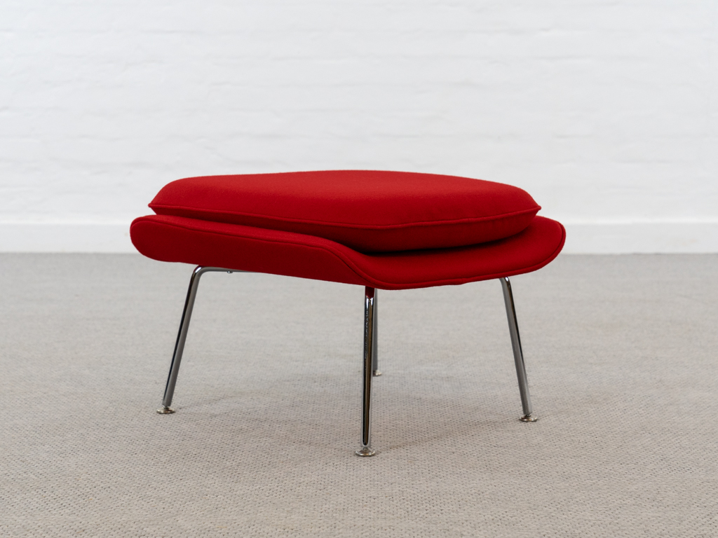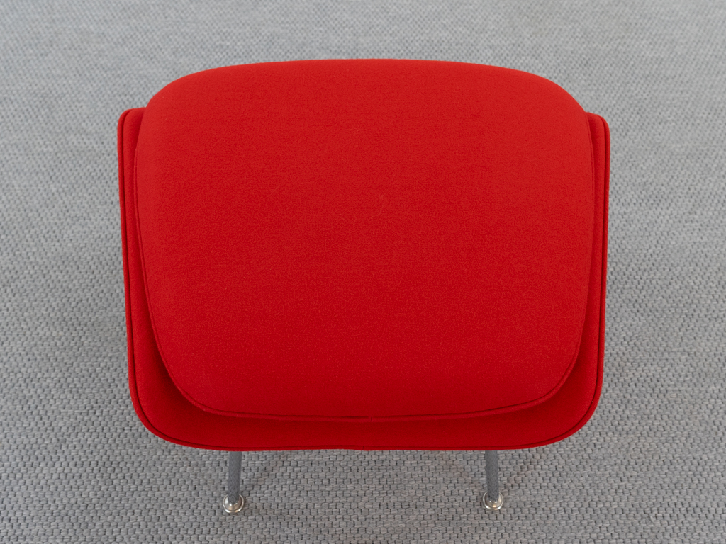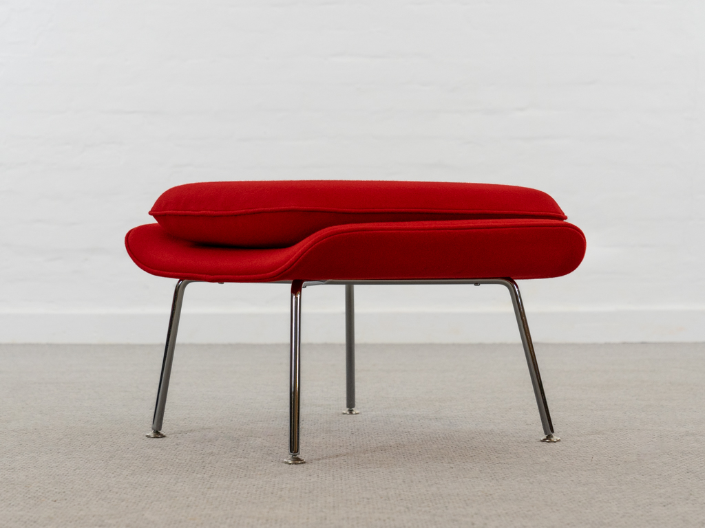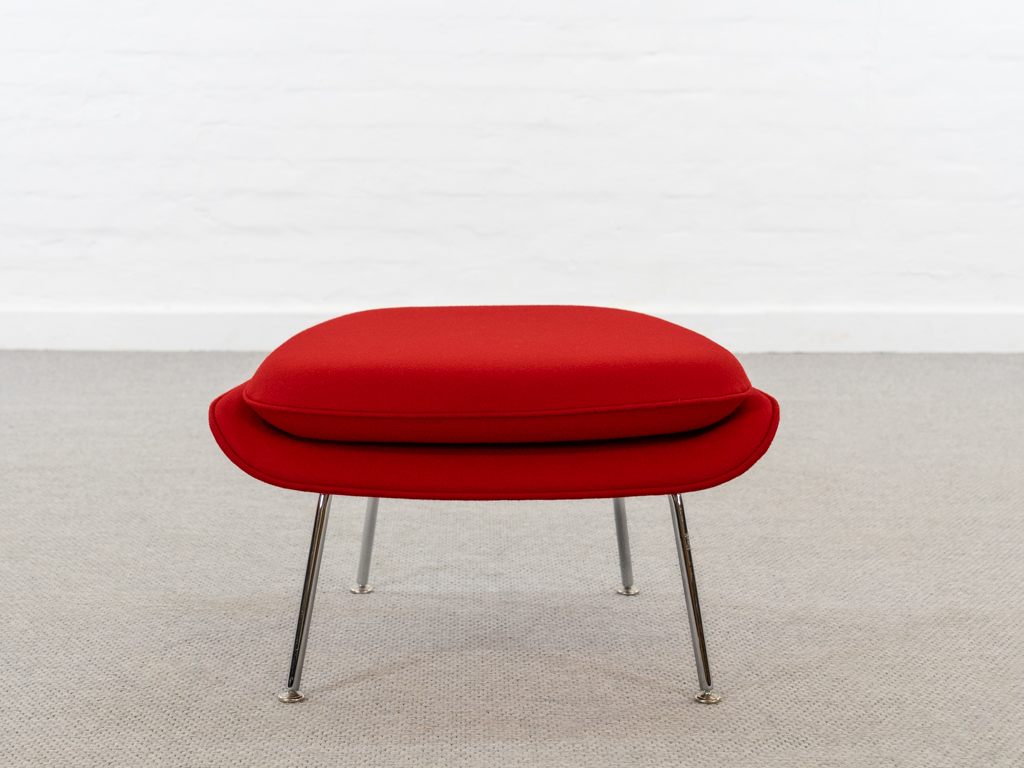 Womb Relax Ottoman / Hocker entworfen 1946 von Eero Saarinen für Knoll International. Die perfekte Ergänzung zum Designklassiker Womb Chair. Auch als Solitär macht der Design-Hocker eine stilvolle Figur und bietet immer eine komfortable Sitzgelegenheit mit seiner sanften, geschwungenen, skandinavischen Formensprache. Am Bein mit Knoll Gravur bezeichnet. Sehr guter Zustand. Der Hocker wurde nie gebraucht.